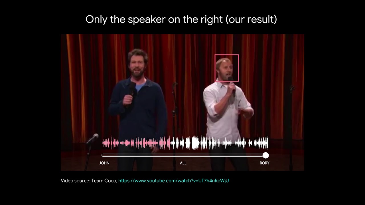 Для начала инженеры Google создали технологию на основе машинного обучения, которая выявляет голоса отдельных людей благодаря «эффекту вечеринки». Это то, что умеем делать все мы: общаясь с человеком в окружении посторонних шумов, мы можем понимать то, о чем он говорит, анализируя не только речь, но и мимику, отфильтровывая «мешающие» звуки. ИИ Google работает похожим образом: проводя анализ мимических мышц лица и всего шума, он выделяет голоса разных людей и создает из них отдельные аудиодорожки. Затем в Google обучили искусственный интеллект распознавать лица людей, изолировать их голоса и подавлять посторонние шумы.